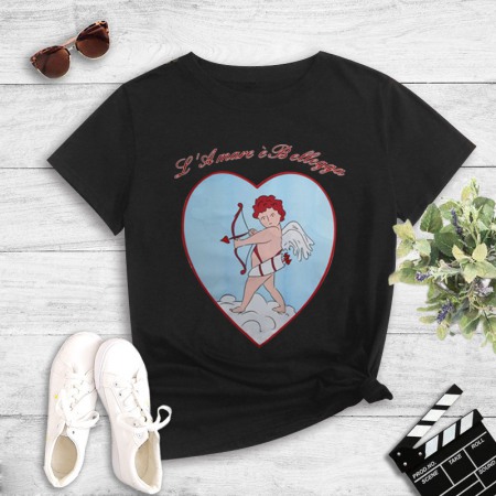 Casual Fashion Street Fashion Cute Angel Love Plus Size Printed T-Shirt Women