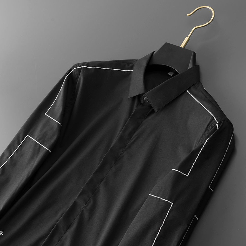 Men's Long-Sleeved Creative Shirt Casual No-Iron Embroidery Long-Sleeved Shirt