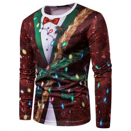 New 3D Personality Printing Fashion Men's Christmas Holiday Long-Sleeved T-Shirt