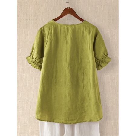 Print T-Shirt Cotton and Linen Casual Short-Sleeved T-Shirts